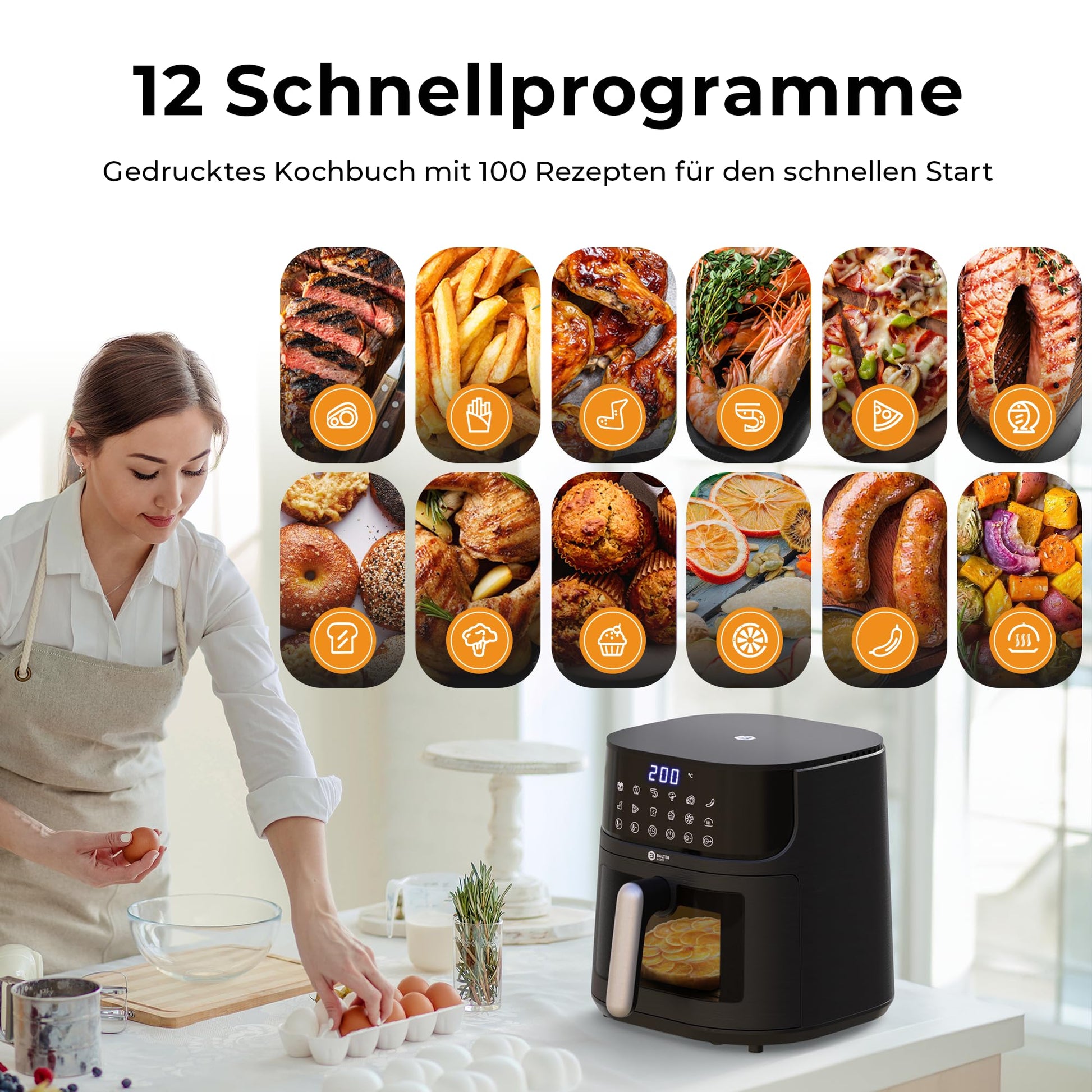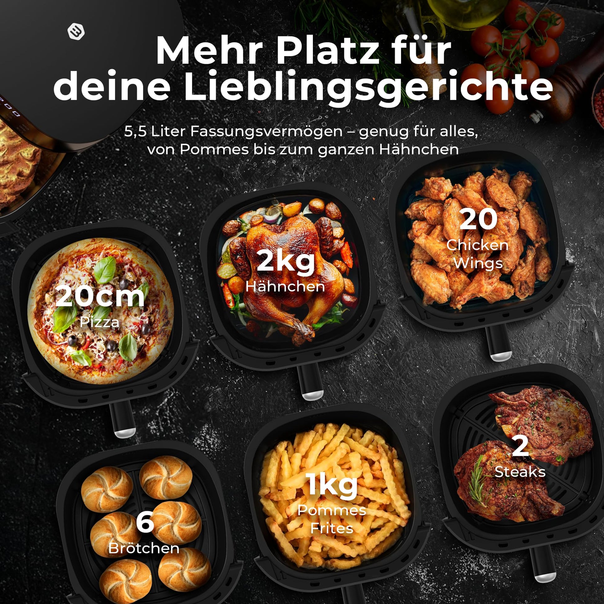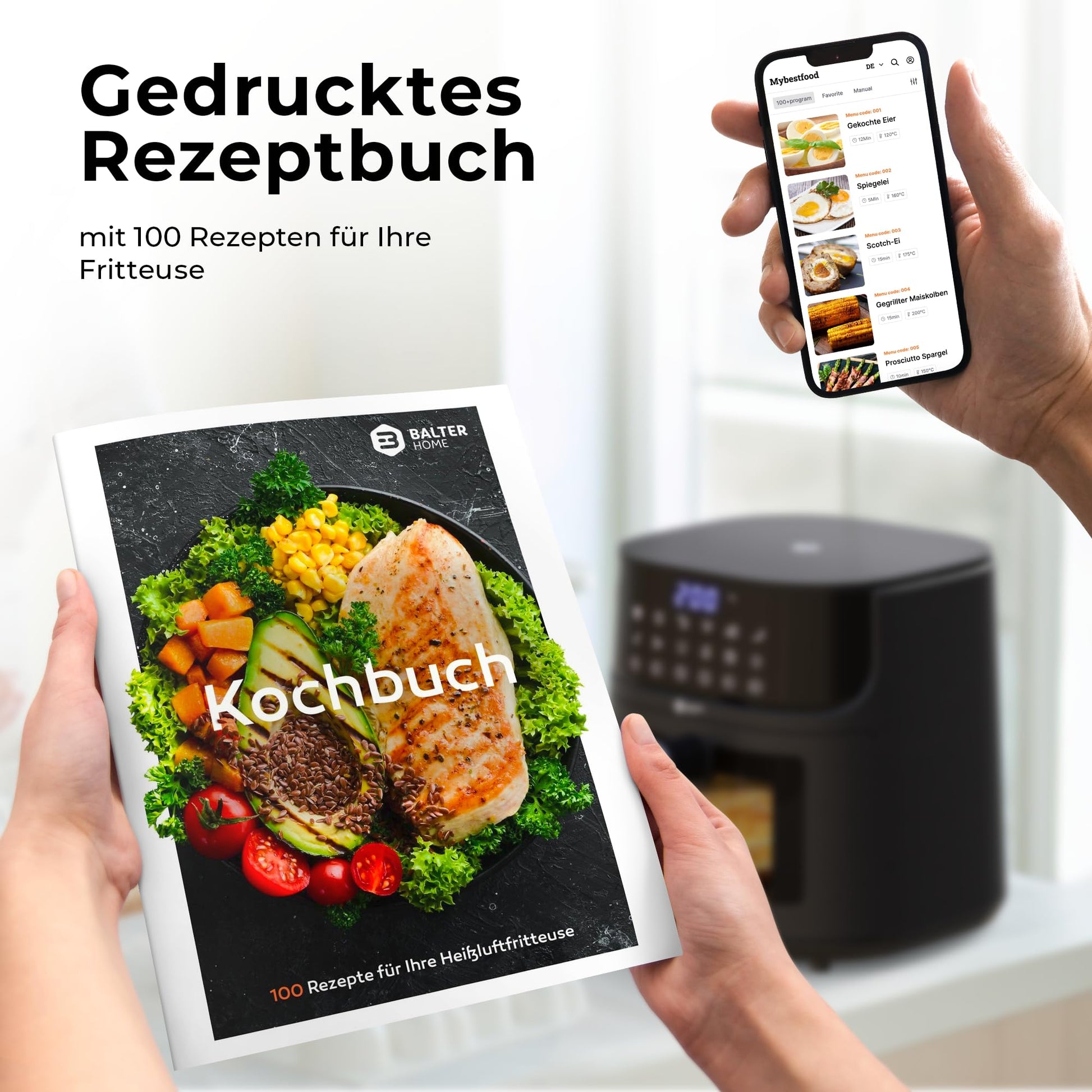- INKLUSIVE AIR FRYER KOCHBUCH – Gedrucktes Rezeptbuch mit 100 abwechslungsreichen Gerichten speziell für deine Heißluftfritteuse entwickelt. Entdecke neue Kochideen und kreative Rezeptvariationen.