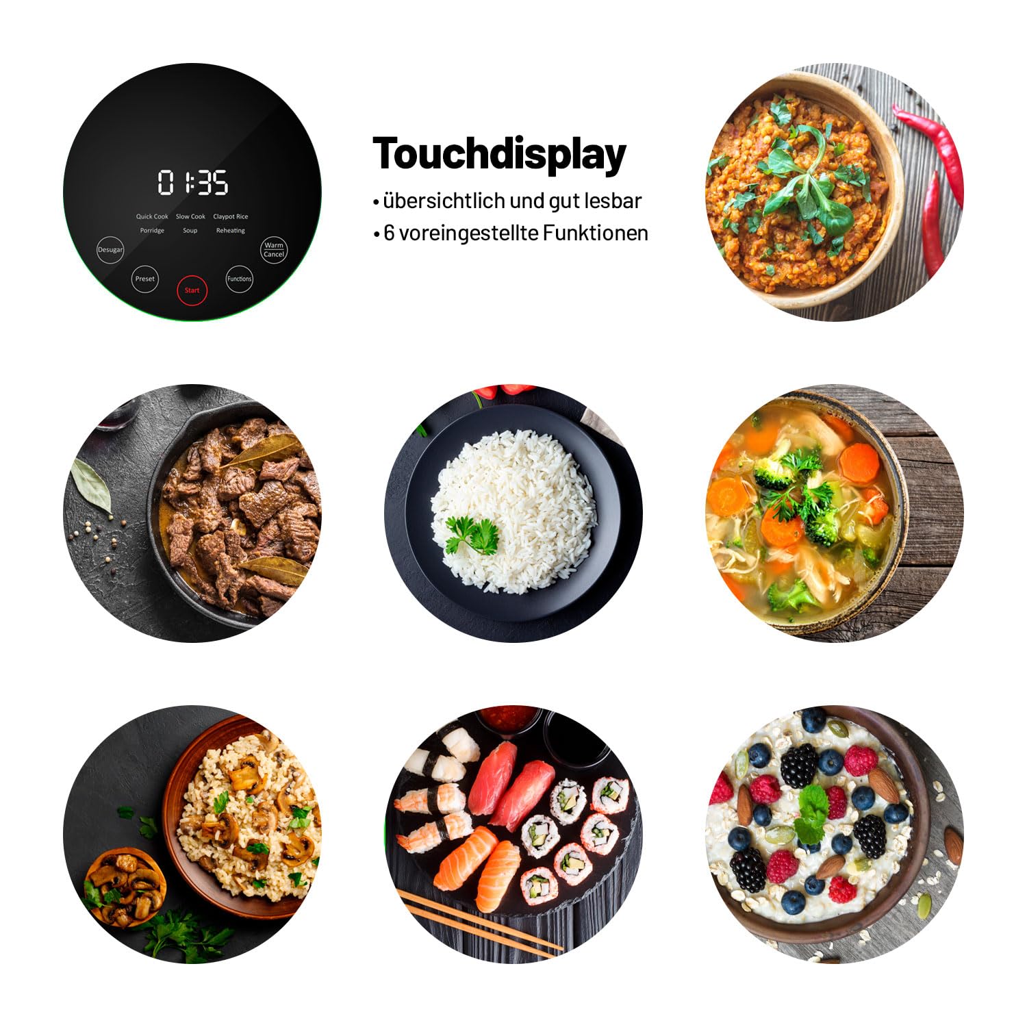 - EINFACH ZU BEDIENEN UND ZU REINIGEN - Die Bedienung wird von jedem bewältigt, alle Einstellungen erfolgen am digitalen Display, an dem der Kochvorgang verfolgt werden kann. Erfreulicherweise ist auch die Wartung sehr einfach. Der Behälter kann im Geschirrspüler gespült werden und Sie müssen nicht den ganzen Nachmittag in der Küche verbringen.