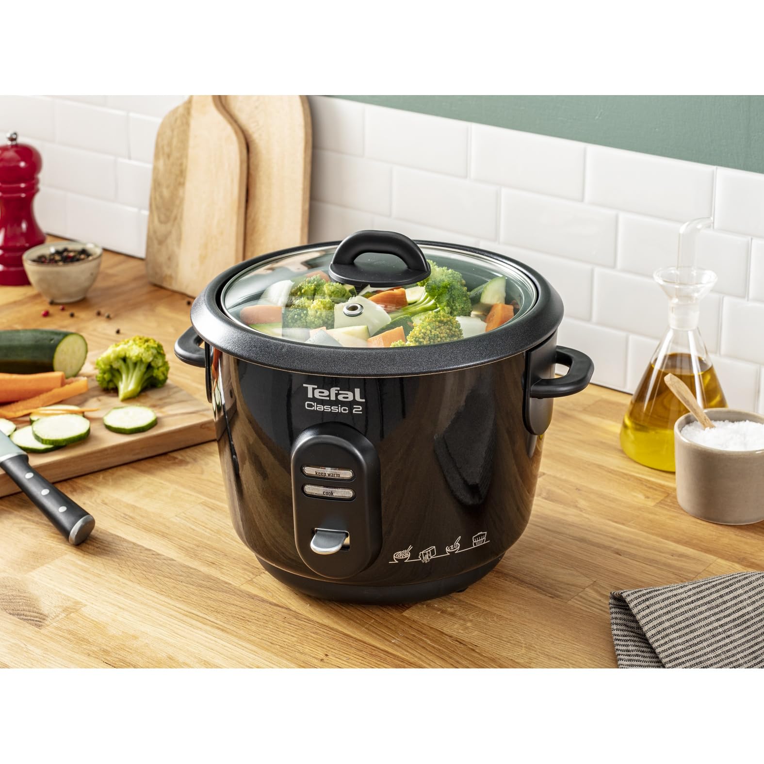 Einzelheiten: Dieser Reiskocher mit kompaktem Design ermöglicht es, mit einem Klick bis zu 900 g Reis mit einem optimalen Geschmacksergebnis zu garen - ein schmackhafterer und zarterer Reis. Durch die automatische Warmhaltefunktion ist das Kochen unerlässlich und unbeaufsichtigt. Variieren Sie Rezepte und kochen Sie gesund durch Dampfgaren. PRAKTISCH - Sie können sogar 2 Gerichte gleichzeitig zubereiten